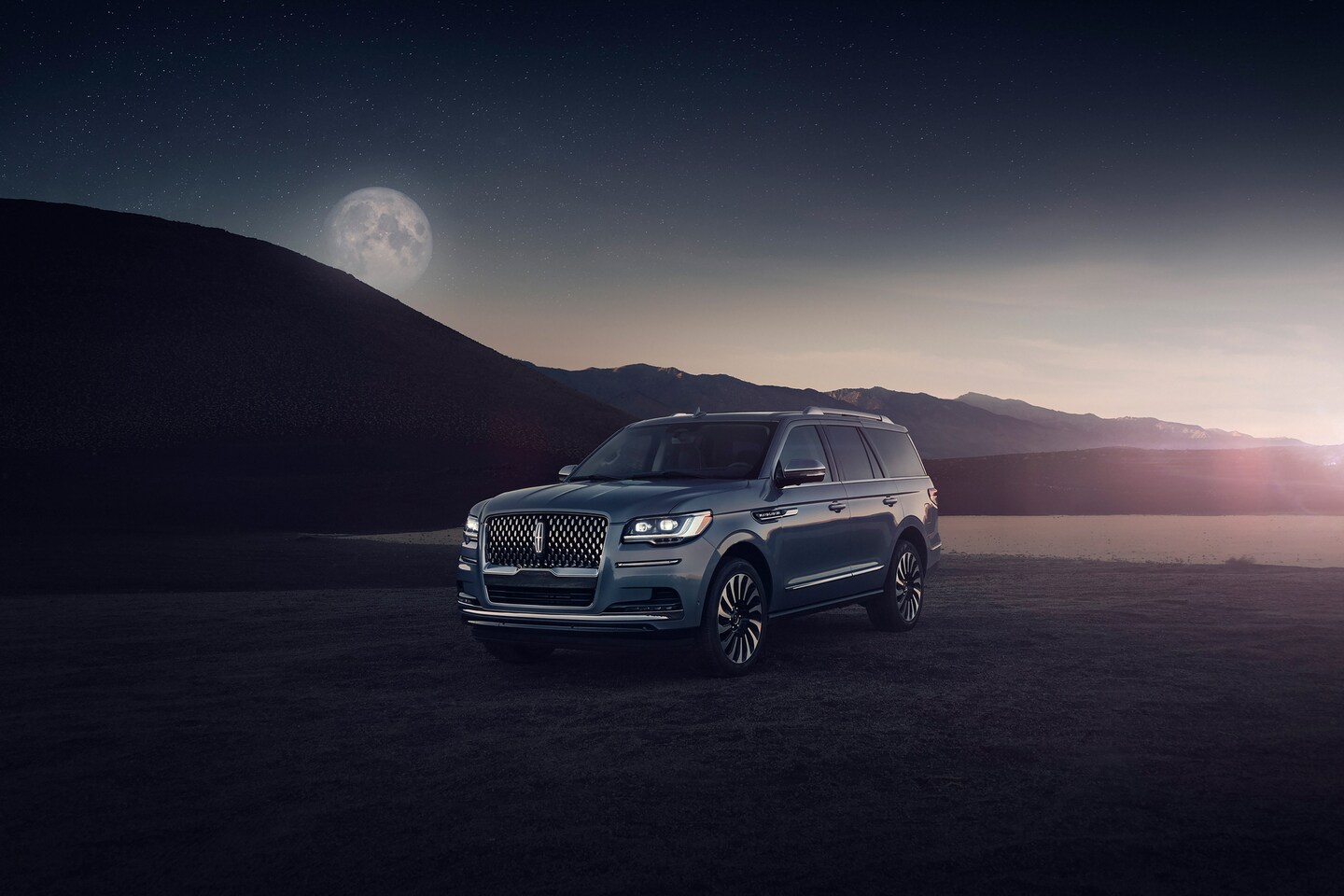 The coast-to-coast rear design of the Lincoln Navigator is elevated with brilliant lighting, soothing lines and grounding energy. The commanding stance of the vehicle is anchored with a sleek rear design that achieves harmonious balance. 3D taillamps wrap the tailgate in a warm glow, with a Lincoln Embrace lighting sequence that bursts from the center like a brilliant sun and spreads its rays across the horizon.