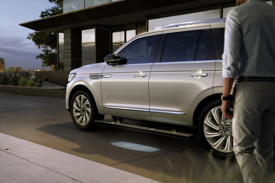 A step up in stepping in. Power-deployable running boards extend and available illumination greets you as you approach - helping to lead the way and to assist you as you enter and exit the vehicle. In sync with the Lincoln logo welcome mat, this small design cue gives you the feeling of a high-profile arrival.
